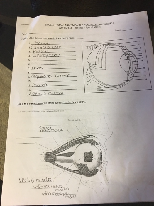 Worksheet Refiexes Special Senses Score Nam Ens Chegg Com